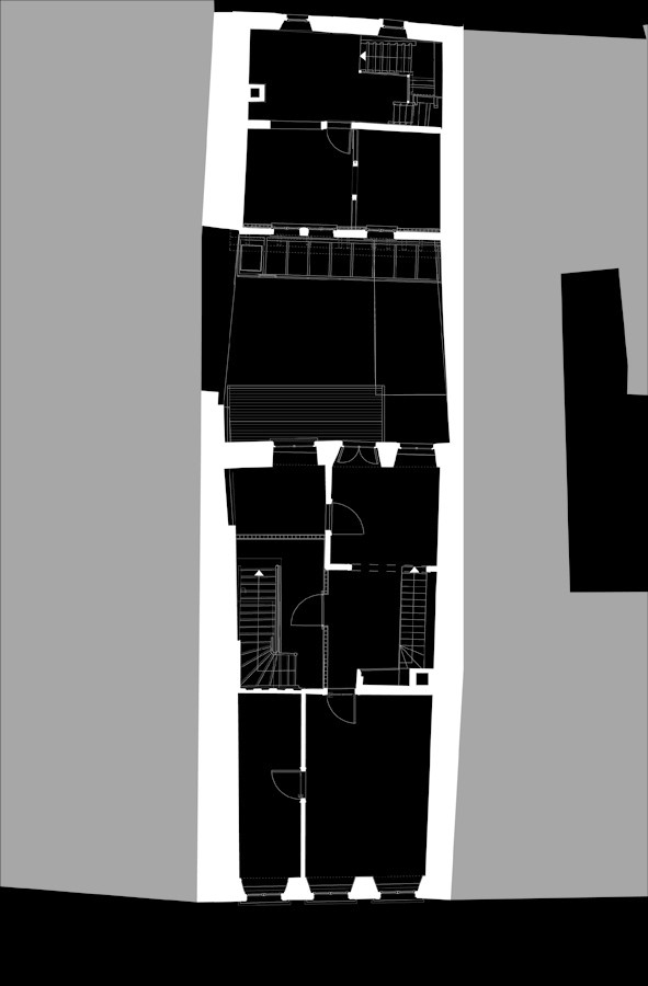 entfernen von sekundären nicht historischen einbauelementen, freilegung der historischen bauelemente, ergänzung von fehlstellen durch contemporäre neue architekturelemente und möbel. erkennen und herausstellen der unterschiedlichen historischen grundrisse, raumfolgen und fassaden. restaurierung und neuinterpretation des stadthauses mit wohnturm zu vier nutzungseinheiten.