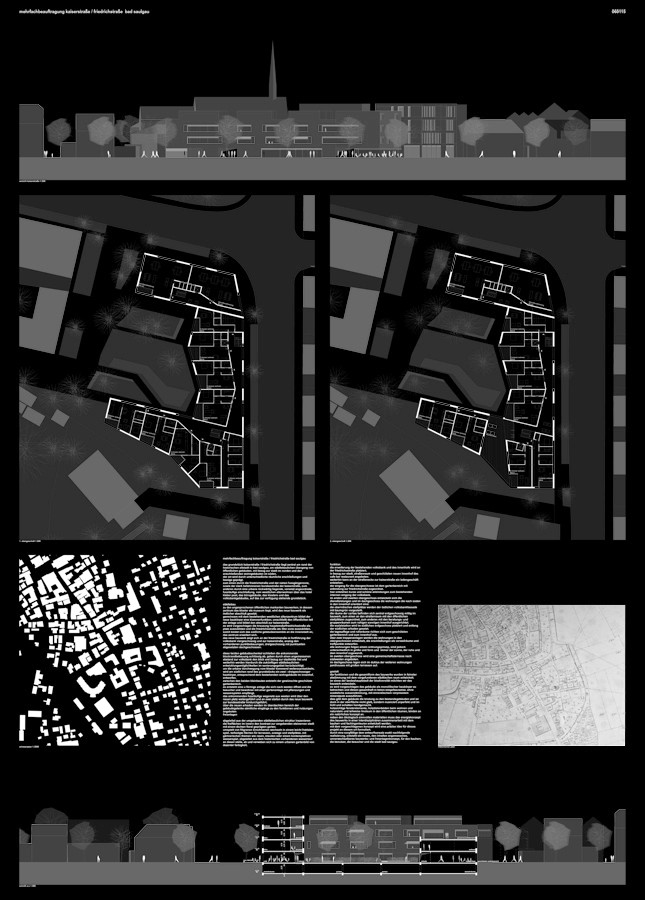 mehrfachbeauftragung kaiserstraße / friedrichstraße bad saulgau das grundstück kaiserstraße / friedrichstraße liegt zentral am rand der historischen altstadt in bad saulgau, am städtebaulichen übergang von öffentlichen gebäuden, mit bezug zur stadt im norden und den anschließenden wohngebäuden im süden. der ort wird durch unterschiedliche räumliche erschließungen und bezüge geprägt. zum einen durch die friedrichstraße und der nahen fussgängerzone, sowie der stark befahrenenen bundesstraße der kaiserstraße, zum anderen durch eine urbane rückwärtig liegende, versetzt angeordnete, fussläufige erschließung, vom westlichen altenwohnen über das hotel kleber post, das bürogebäude, das klosters und das volksbankgebäudes, auf das zur verfügung stehende grundstück.