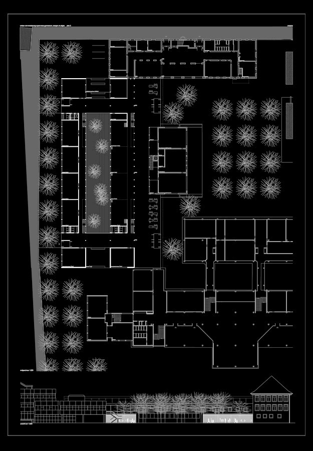 zwischen dem historischen schulgebäude und der kaufmännischen schule wird das neue bauwerk in die raumfuge eingeschoben. durch die ausbildung einer zentralen halle, integration der bestehenden funktionen, sowie die horizontalen und vertikalen gliederungen des neuen baukörpers, wird das komplette schulensemble übersichtlich, großzügig und funktional schlüssig. der nördliche abschluss zum stadionweg wird analog den bestehenden hauptbaukörpern als dreigeschossiger kubus vorgeschlagen,welcher einerseits aus dem stadtraum der liebigstraße/ stadt erkennbar wird, andererseits den leitgedanken campus unterstützt und die halle als zentralen platz, treffpunkt, welche durch die u-förmige bebauung eingefasst wird und sich zum schulhof öffnet, definiert.