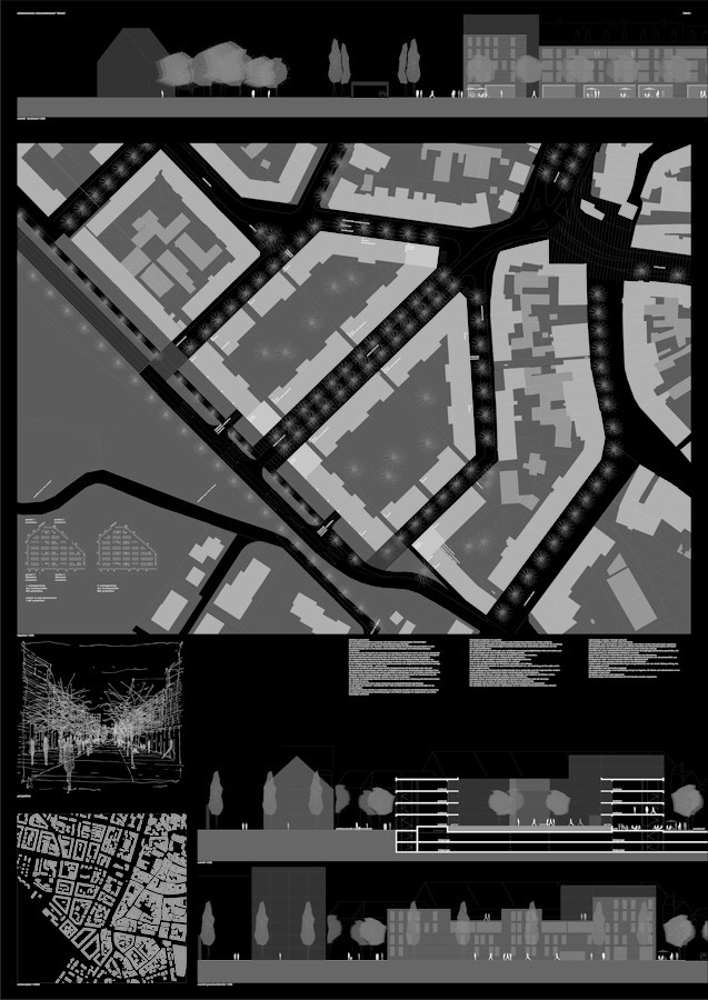 das neue wohnquartier wird konsequent in das bestehende stadtquartier döbele integriert. die angrenzenden fassaden der gründerzeitbebauungen bilden einen guten rahmen für die schaffung von hochwertigen verkehrsberuhigten bereichen zwischen den bestehenden gebäuden und den neuen gebäudeblöcken. der boulevard wird mit breiten geh und nutzflächen kurzzeitparkmöglichkeiten links und rechts auch für anlieferungen und dem straßenraum grosszügig gestaltet. es soll ein lebendiger grüner mit bäumen gesäumter boulevard entstehen. alle weiteren straßen werden als anliegerstraßen angeboten. es entstehen der wertigkeit entsprechend vier tiefgaragenzufahrten zwei in den anliegerstraßen ausschließlich für anlieger zwei an der grenzbachstraße für öffentliche nutzungen und anlieger. an der döbelestraße entsteht ein quartierstreffpunkt/kiosk etc. und bewirtung auf den platz und in die grünräume hinein. in der verlängerung döbelestraße/schützenstrasse ist es notwendig auch die angrenzenden straßenund platzräume in das verkehrsberuhigte quartierskonzept mit einzubinden. selbstverständlich können anlieger, busse, sowie fußgänger und radfahrer die flächen nutzen. innerhalb der neuen bebauungen entstehen grüne innenräume. passagen bilden verbindungsmöglichkeiten innerhalb des quartiers nach ost und west. eine passage nach norden ist die direkte verbindung zur döbelestraße. die passagen haben direkte anbindungen an die grünverbindungen am grenzbach. die aufnahme des themas wasser, regenwasser ist ein wichtiges freiraumplanerisches element.