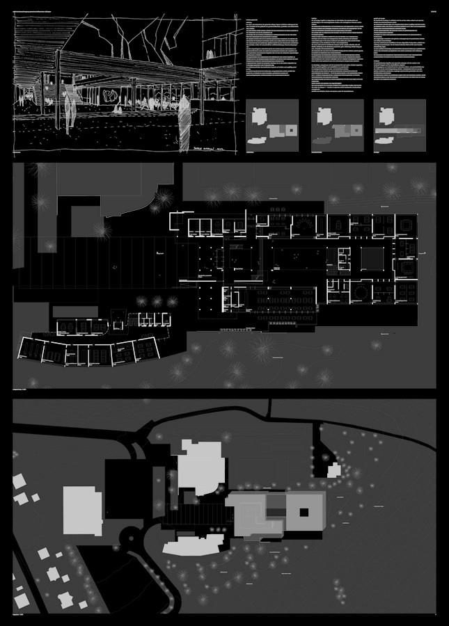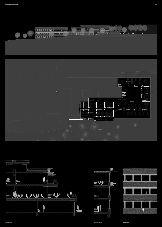 die technischen anforderungen zum energiehaushalt müssen sorgfältig entwickelt werden, grundsätzlich sollten alle bauteile ausreichend gedämmt und an allen sonnenausgesetzten verglasungen sonnenschutzelemente entwickelt werden. aus den gestaltungsmitteln des bestandes werden die gestaltungsmittel des erweiterungsbauwerks entwickelt. es entsteht ein neues, exakt gestapeltes sichtbetongebäude mit aussenansichten in brettschalung. alle verglasungen unterstehen dem gleichen ordnungsprinzip mit quadratischen scheiben und mittigem achsendrehlager. durch den entwurfsansatz basisflächen mit zwei aufgestellten hochpunkten, entsteht eine schlüssige bauwerksskuptur, die den bestand erkennbar lässt und die neuen bauteile selbstständig zeigen. um eine qualitativ hochwertige und wirtschaftlich interessante bebauung zu gewährleisten müssen den entwickelten grundgedanken eine präzise umsetzung in der realisierung folgen. die technischen und energetischen weiterentwicklung sind in einer interdisziplinären zusammenarbeit mit bauherren und ingenieurbüros weiterzuentwickeln.