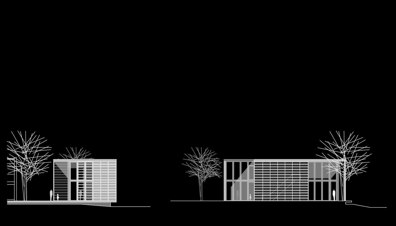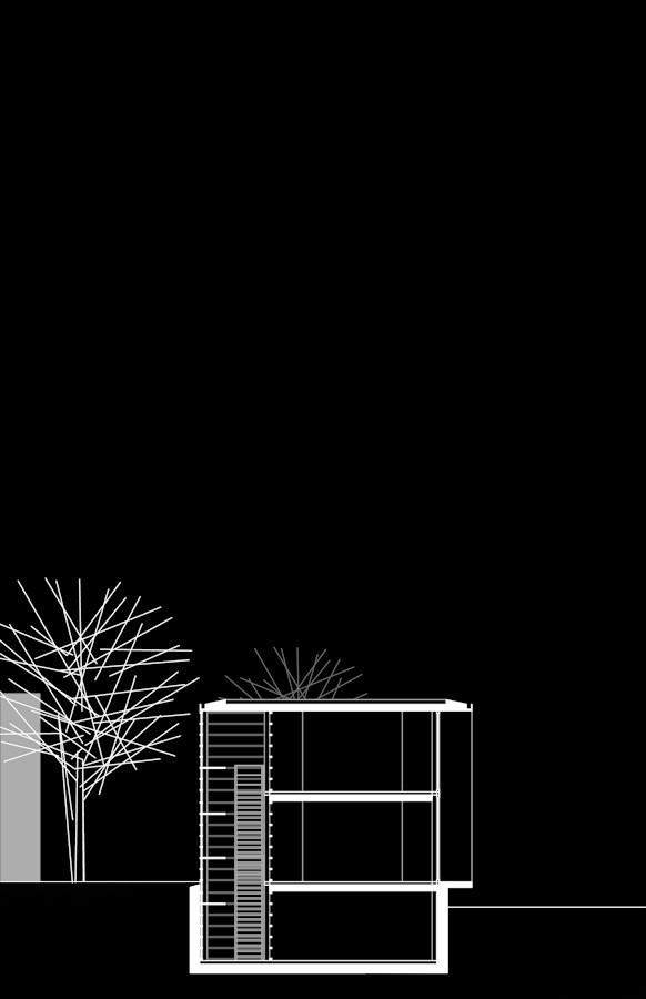 der charakter des zweigeschossigen inenraums wird durch die terrassierte anordnung der arbeits- und ausstellungsflächen auf der nordseite bestimmt. über die getreppten ebenen erreicht man die flure und büroräume der oberen etage des präsentationsgeschosses. die dortigen trennwände sind aus den unterschiedlichen produktionslinien der firma feederle gefertigt. die halle in der mitte, die auch als veranstaltungsraum genutzt wird, erhält durch runde oberlichter tageslicht. alle wände und brüstungen sind weiß gestrichen. der bodenbelag von halle und eingangsbereich besteht aus geschliffenem gussasphalt. das zweite obergeschoss ist eine reine verwaltungsebene, die langfristig vom eigentümer selbst genutzt werden kann. der nördliche gebäudeflügel ist nochmals um ein geschoss höher. dort befindet sich eine auch als wohnung nutzbare reservefläche.
