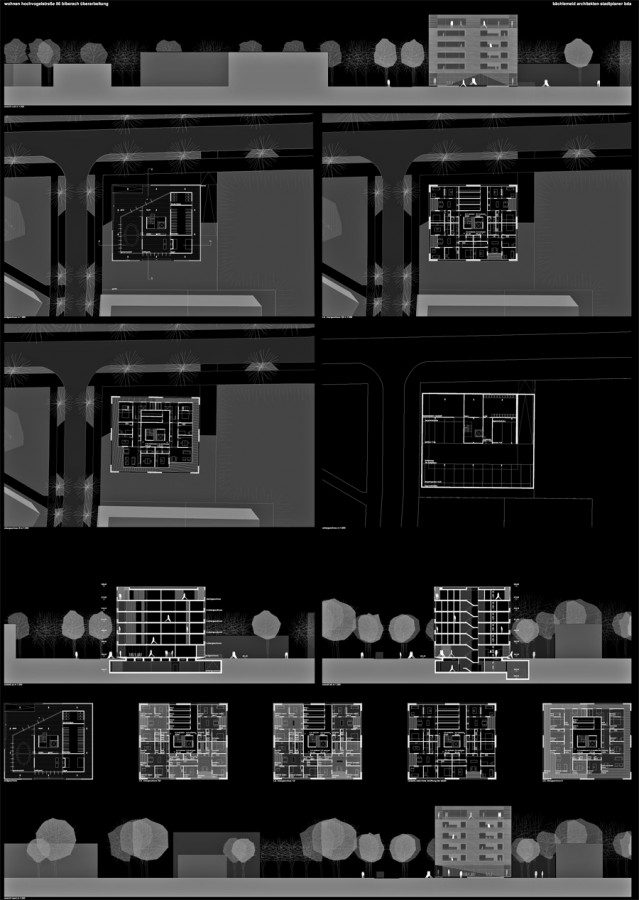 es wird vorgeschlagen ein markantes, präzises, kubisches 6 geschossiges wohnprojekt in massivholzbauweise oder alternativ in massivbauweise, vom gelände durch einen zurückliegenden betonsockel leicht abgehoben auf dem tiefgaragengeschoss, zu errichten.