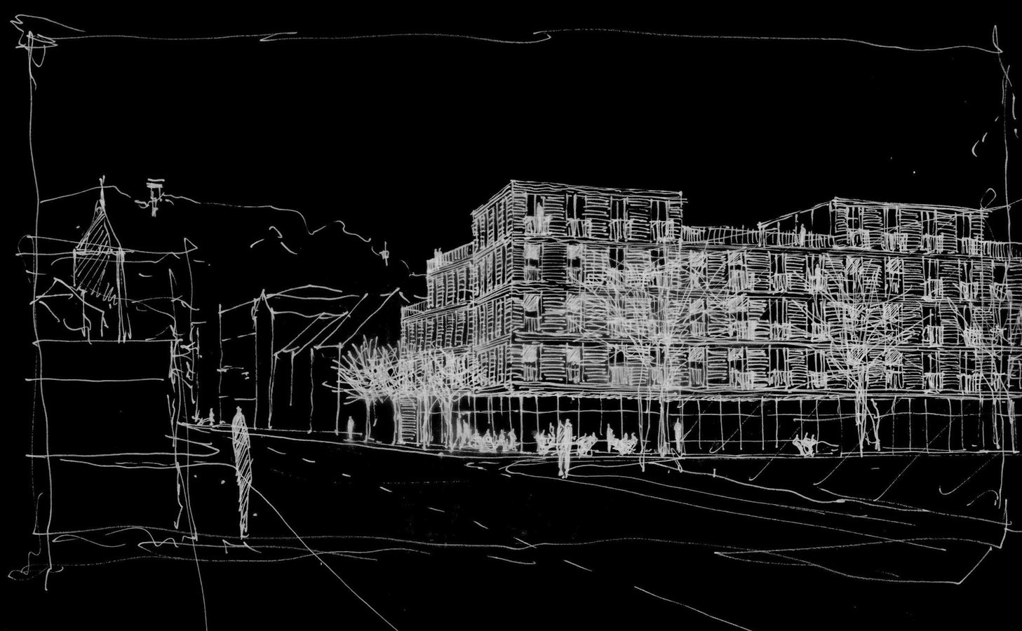 die vorgefundene blockrandbebauung zeigt eine in maß und höhe heterogene bebauung mit zwei bis viergeschossigen baukörpern und dachgeschossen. an der ziegelstraße sowie an den anschlüssen zur rudolfstraße und zwergerstraße wird der blockrand fortgeführt und geschlossen. die ziegelstraße wird durch eine viergeschossige randbebauung in zwei baukörpern mit regelmäßigen, wiederkehrenden kopfaufbauten als dachaufbau gegliedert. an der rudolfstraße wird die viergeschossige bebauung fortgeführt und an der zwergerstraße geschieht dies ebenfalls, jedoch zur niedrigen zweigeschossigen nachbarbebauung um ein geschoss abgestaffelt, sodass ein dreigeschossiger anschluss entsteht. aus dem ordnungsprinzip der blockrandtypologie werden die hofhäuser - pavillons- weiterentwickelt. diese werden als dreigeschossige baukörper mit dachaufbau vorgeschlagen. die dem wohnen vorbehaltenen ruhigen innenhofbebauungen gliedern sich zum einen an die blockrandstrukuren an, zum anderen stehen diese als freistehende neue bauwerke im innenhof in weiterführung der vorgefundenen nordsüd stehenden bestandsgebäude. entlang der bestehenden innenhofeinzelhäuser in ostwestrichtung wird weiterhin ein neuer baukörper eingefügt der die körnung dieser achse aufnimmt und diese im quartier fortführt.